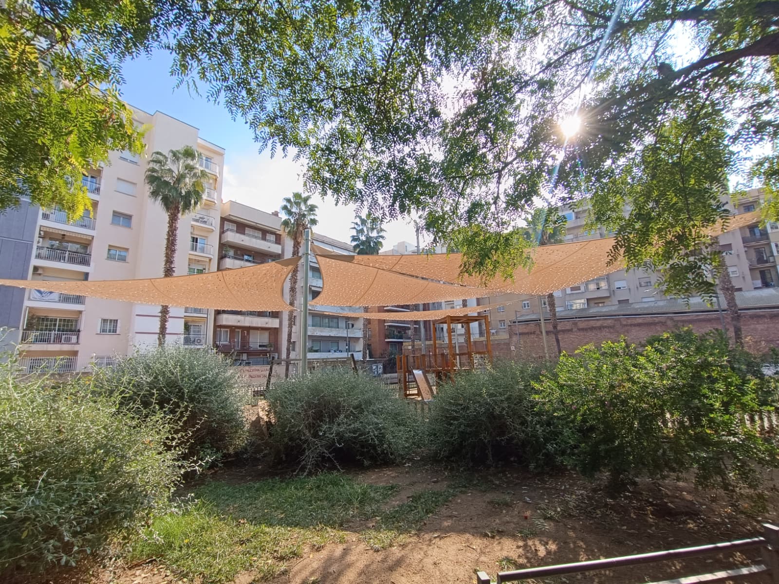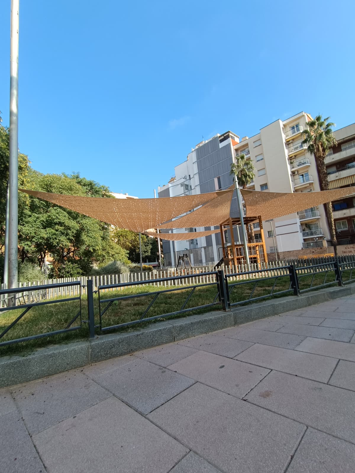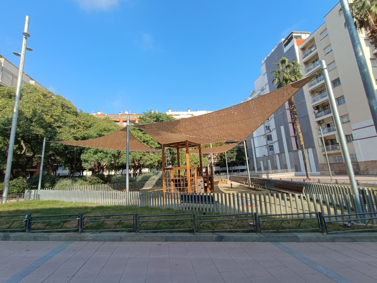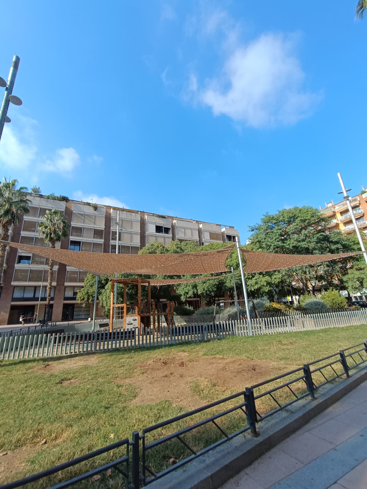 Data octubre de 2025Sobre la zona de jocs infantils del Jardins d’Antoni Puigvert s’han instal·lat tendals troquelats fabricats amb tela perforada Tecnicamo, que ofereixen una protecció fiable contra el sol durant els dies calorosos, tenint cura tant dels més petits com dels seus acompanyants.