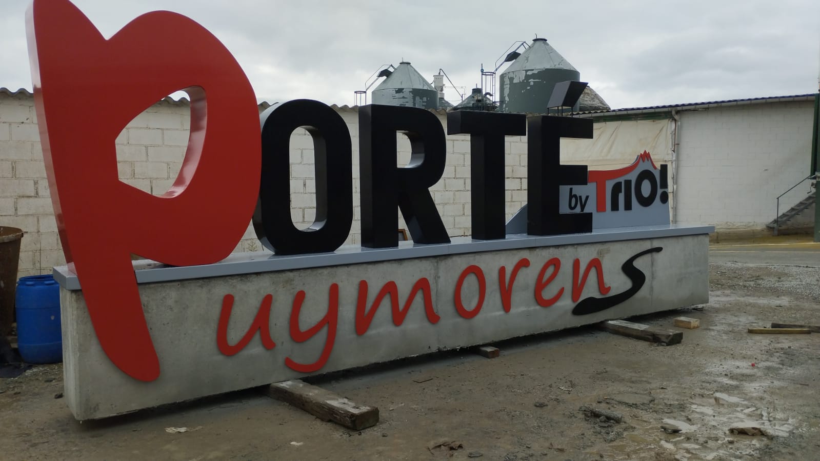 La base està fabricada amb formigó resistent, mentre que les lletres volumètriques són d’acer pintat al forn, cosa que garanteix una gran durabilitat i resistència a les condicions climàtiques.